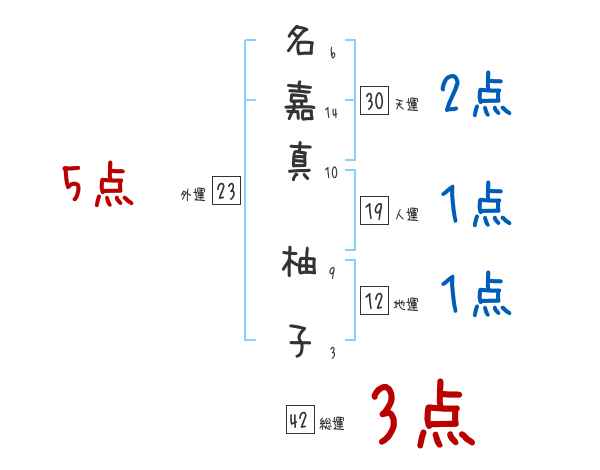 天運![]() | 名嘉真柚子さんの天運は30画の2つ星!浮き沈みの激しさに注意しましょう。 家系が持つ宿命的な運勢を表します。祖先から受け継いだ苗字ですので自分の力が及びません。家柄を象徴します。 |