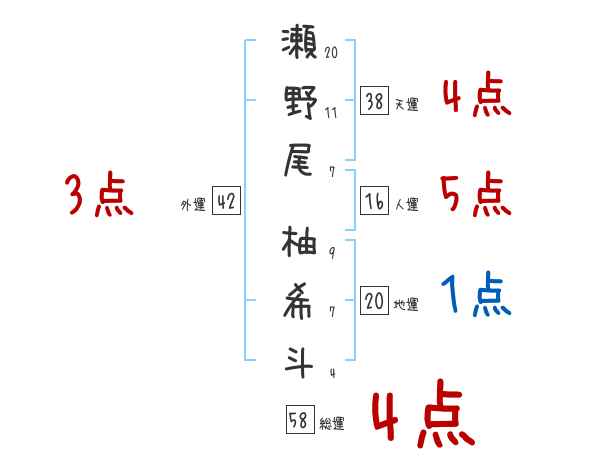 瀬野尾柚希斗さんの画数の鑑定結果