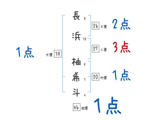 | 天運  | 長浜柚希斗さんの天運は26画の2つ星!波瀾万丈かも。信頼できる人を大事にしましょう。家系が持つ宿命的な運勢を表します。祖先から受け継いだ苗字ですので自分の力が及びません。家柄を象徴します。 |