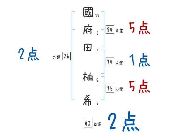 外運![]() | 國府田柚希さんの外運は26画の2つ星!波瀾万丈かも。信頼できる人を大事にしましょう。 生活面を象徴する運勢です。外部から受ける影響力を表し、結婚運、家庭運や職場、環境への順応性を表します。 |
