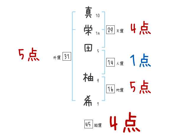 総運![]() | 真栄田柚希さんの総運は45画の4つ星!もくもくと物事を進め達成する。地味な努力家。 あなたの人生を表す1番重要な運勢です。生涯を通じて影響する総合運となり、主に50歳以降の晩年期に影響を及ぼします。 |