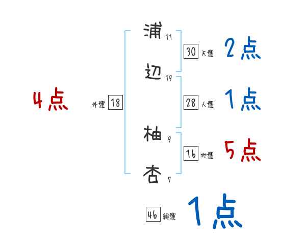 浦辺柚杏さんの画数の鑑定結果
