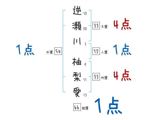 逆瀬川柚梨愛さんの画数の鑑定結果