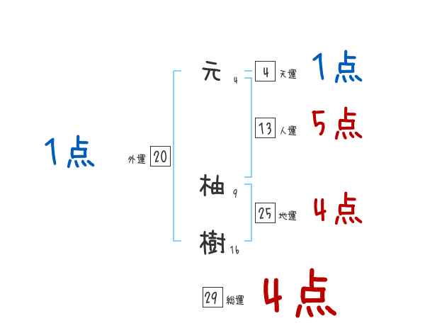 天運![]() | 元柚樹さんの天運は4画の1つ星!感情が不安定で苦労するかも。周囲との協調を心掛けましょう。 家系が持つ宿命的な運勢を表します。祖先から受け継いだ苗字ですので自分の力が及びません。家柄を象徴します。 |