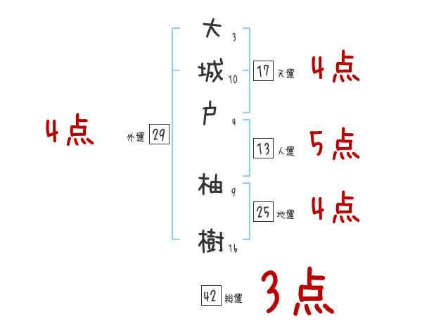 総運![]() | 大城戸柚樹さんの総運は42画の3つ星!病気に注意。多芸であるが消極的でおとなしい。 あなたの人生を表す1番重要な運勢です。生涯を通じて影響する総合運となり、主に50歳以降の晩年期に影響を及ぼします。 |