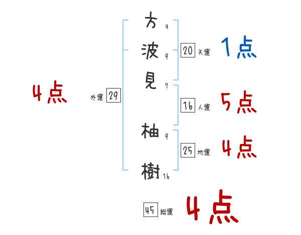 外運![]() | 方波見柚樹さんの外運は29画の4つ星!完全主義で才能がある。厳格な心の持ち主。 生活面を象徴する運勢です。外部から受ける影響力を表し、結婚運、家庭運や職場、環境への順応性を表します。 |