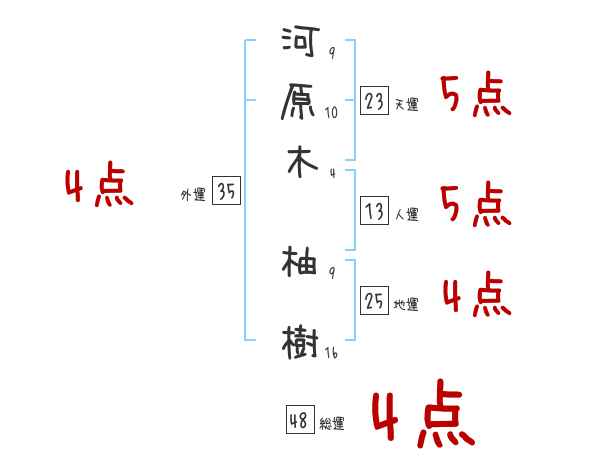 河原木柚樹さんの画数の鑑定結果