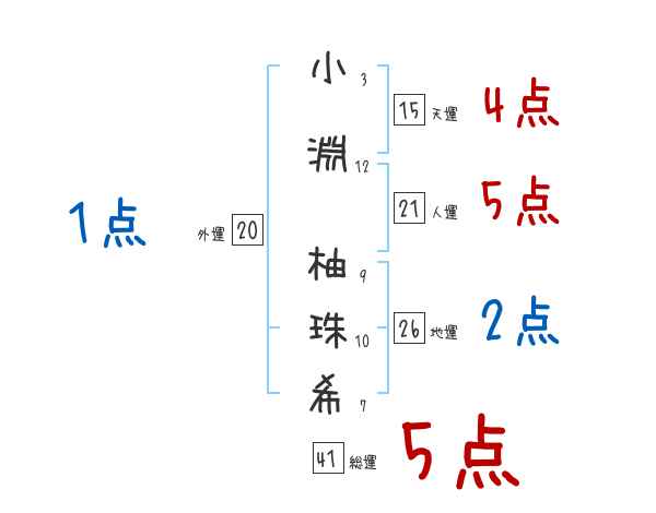 地運![]() | 小淵柚珠希さんの地運は26画の2つ星!波瀾万丈かも。信頼できる人を大事にしましょう。 個性を表す基礎的な運勢です。性格形成や対人関係、行動力など家庭環境に影響されます。主に誕生してから20歳くらいまでの若年期の運勢を表します。 |