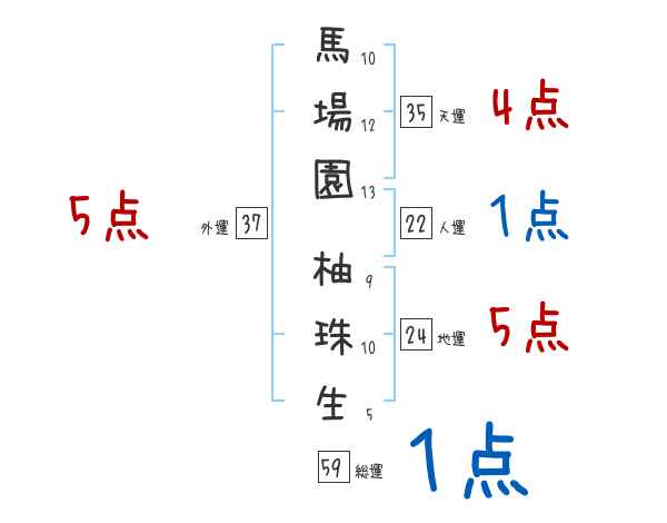 外運![]() | 馬場園柚珠生さんの外運は37画の5つ星!努力家で順応性に優れる。現実的な考え方ができ忠実に物事をこなす。 生活面を象徴する運勢です。外部から受ける影響力を表し、結婚運、家庭運や職場、環境への順応性を表します。 |