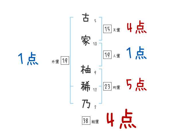 古家柚稀乃さんの画数の鑑定結果