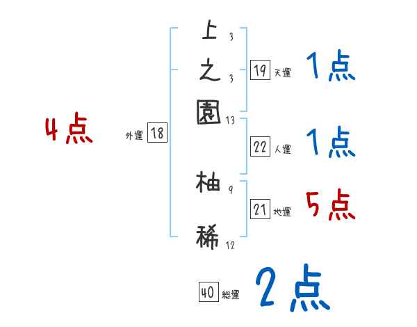 上之園柚稀さんの画数の鑑定結果