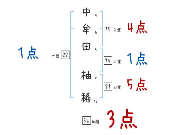 外運![]() | 中牟田柚稀さんの外運は22画の1つ星!努力することが苦手ないっぽう手先が器用。芸術性にも優れる。 生活面を象徴する運勢です。外部から受ける影響力を表し、結婚運、家庭運や職場、環境への順応性を表します。 |
