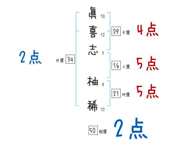 外運![]() | 眞喜志柚稀さんの外運は34画の2つ星!独創性に優れるが、自尊心が強く災難に注意しましょう。 生活面を象徴する運勢です。外部から受ける影響力を表し、結婚運、家庭運や職場、環境への順応性を表します。 |