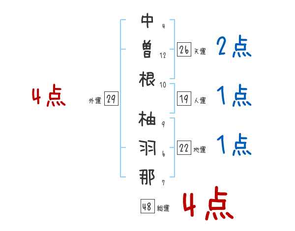 中曽根柚羽那さんの画数の鑑定結果