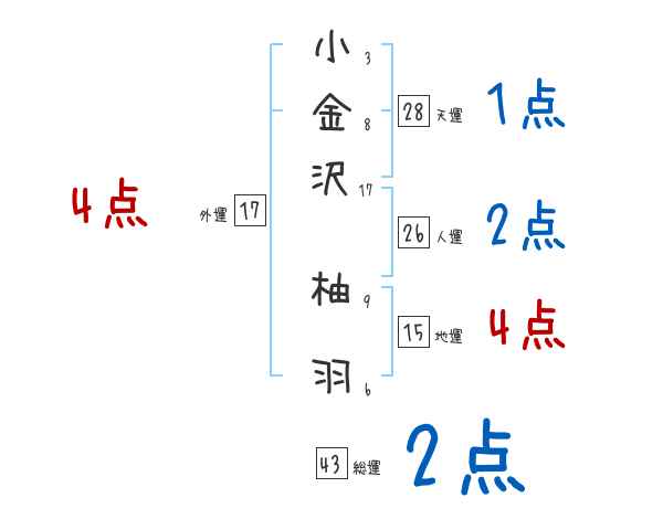 小金沢柚羽さんの画数の鑑定結果