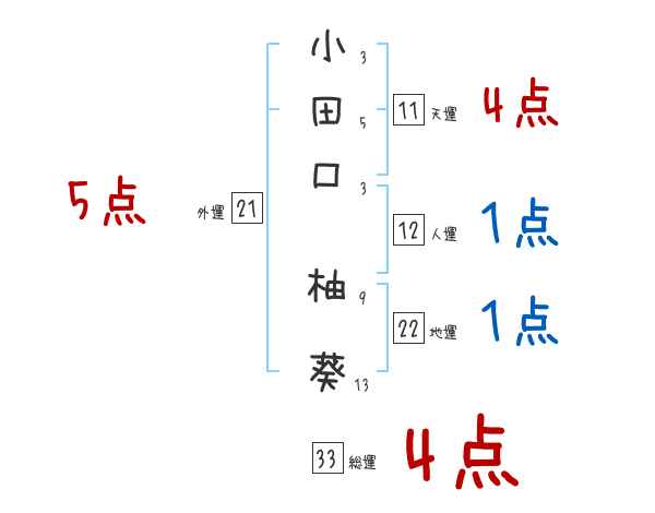 小田口柚葵さんの画数の鑑定結果