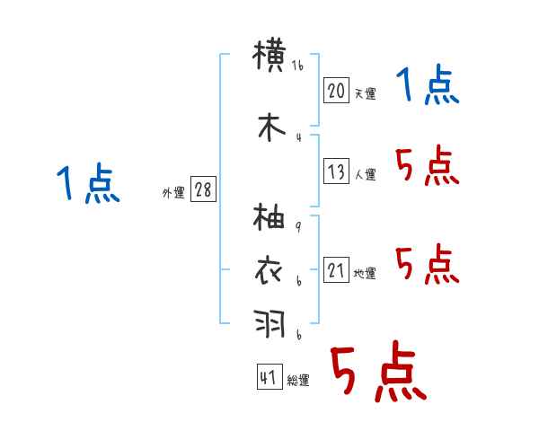 外運![]() | 横木柚衣羽さんの外運は28画の1つ星!家庭環境に注意。スポーツで活躍できる能力があるかも。 生活面を象徴する運勢です。外部から受ける影響力を表し、結婚運、家庭運や職場、環境への順応性を表します。 |