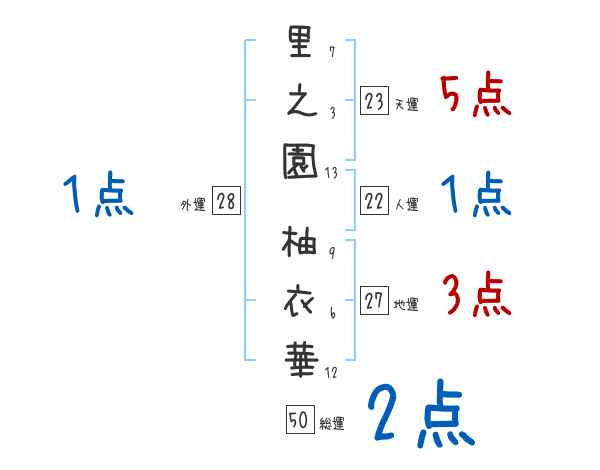 天運![]() | 里之園柚衣華さんの天運は23画の5つ星!想像力に優れ活力がある。一代で成功し名誉を手に入れる。 家系が持つ宿命的な運勢を表します。祖先から受け継いだ苗字ですので自分の力が及びません。家柄を象徴します。 |