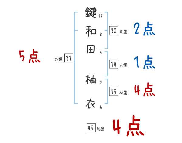 鍵和田柚衣さんの画数の鑑定結果