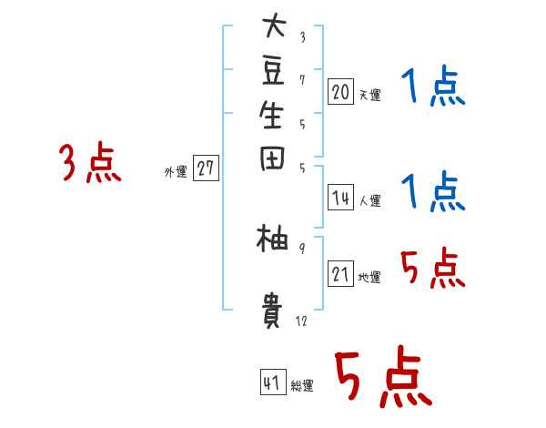 総運![]() | 大豆生田柚貴さんの総運は41画の5つ星!大志を抱き、目標に向かって実力を発揮し達成する。温和な性格。 あなたの人生を表す1番重要な運勢です。生涯を通じて影響する総合運となり、主に50歳以降の晩年期に影響を及ぼします。 |