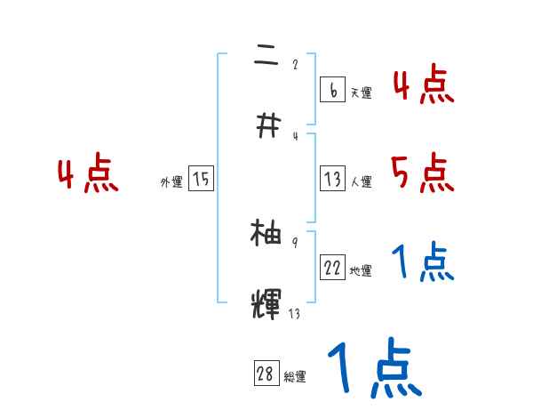 二井柚輝さんの画数の鑑定結果