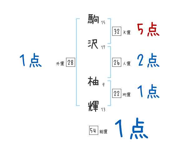 駒沢柚輝さんの画数の鑑定結果