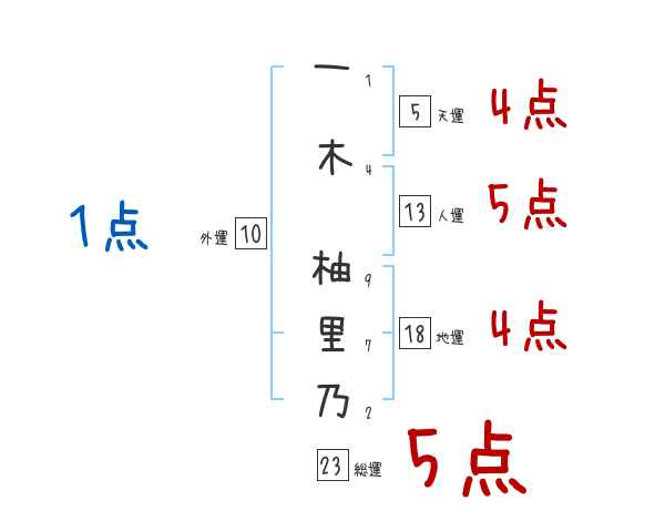 天運![]() | 一木柚里乃さんの天運は5画の4つ星!健康で安泰。協調性に優れ、財産に恵まれる。 家系が持つ宿命的な運勢を表します。祖先から受け継いだ苗字ですので自分の力が及びません。家柄を象徴します。 |