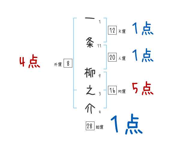 一条柳之介さんの画数の鑑定結果
