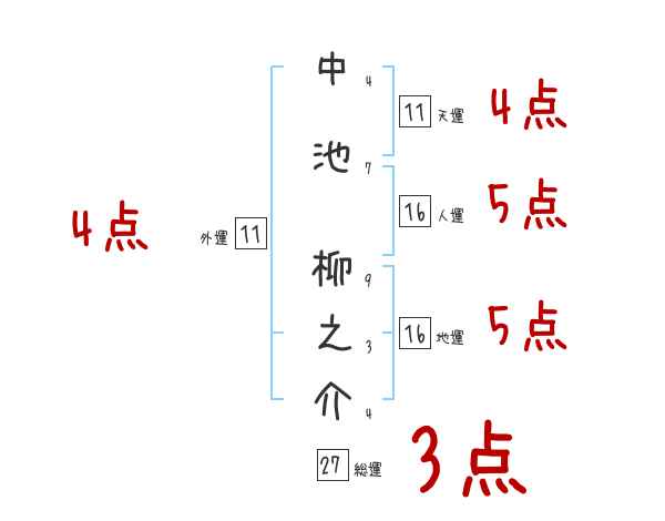 中池柳之介さんの画数の鑑定結果