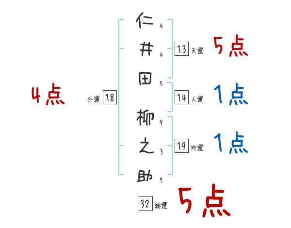 総運![]() | 仁井田柳之助さんの総運は32画の5つ星!柔軟性があり成功する。チャンスが多く金運が良い。 あなたの人生を表す1番重要な運勢です。生涯を通じて影響する総合運となり、主に50歳以降の晩年期に影響を及ぼします。 |