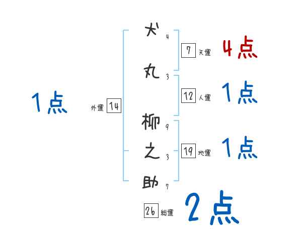 外運![]() | 犬丸柳之助さんの外運は14画の1つ星!人に対して優しいがストレスを溜め込みがち。人間関係のトラブルを避けるよう気をつけましょう。 生活面を象徴する運勢です。外部から受ける影響力を表し、結婚運、家庭運や職場、環境への順応性を表します。 |