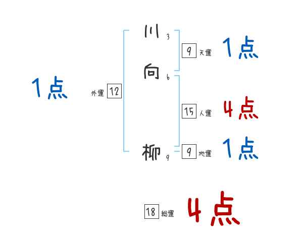 天運![]() | 川向柳さんの天運は9画の1つ星!消極的で才能を発揮することが苦手なことも。周りの意見に耳を傾けましょう。 家系が持つ宿命的な運勢を表します。祖先から受け継いだ苗字ですので自分の力が及びません。家柄を象徴します。 |