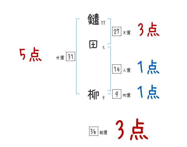鑓田柳さんの画数の鑑定結果