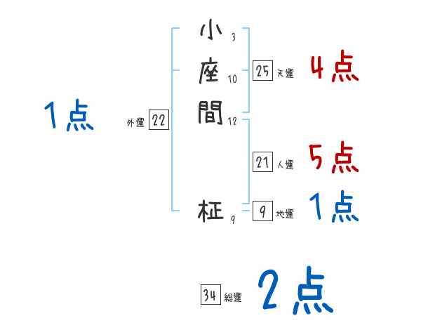小座間柾さんの画数の鑑定結果