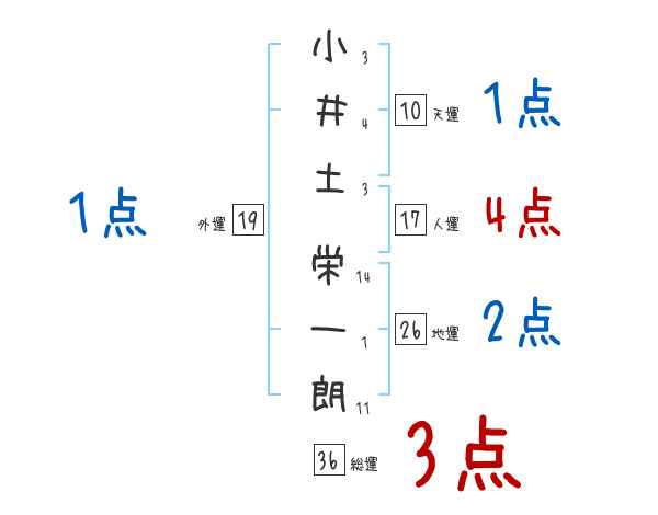 総運![]() | 小井土栄一朗さんの総運は36画の3つ星!先見性が豊かです。多少神経質で苦労することも。 あなたの人生を表す1番重要な運勢です。生涯を通じて影響する総合運となり、主に50歳以降の晩年期に影響を及ぼします。 |