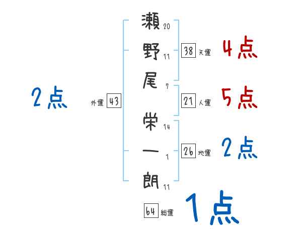 瀬野尾栄一朗さんの画数の鑑定結果