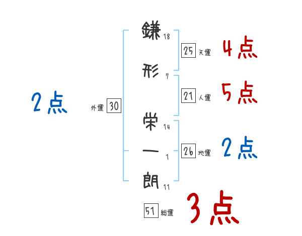鎌形栄一朗さんの画数の鑑定結果