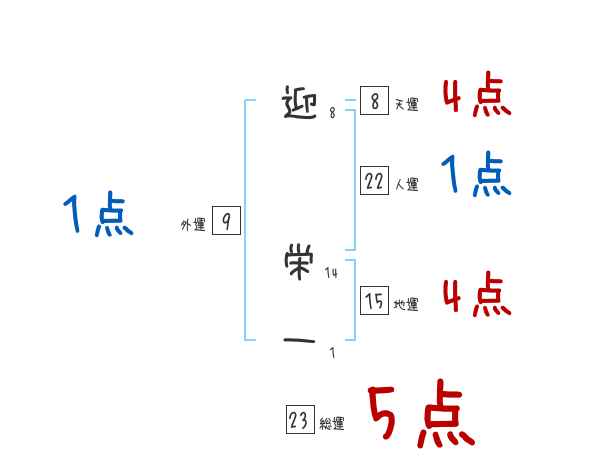 総運![]() | 迎栄一さんの総運は23画の5つ星!想像力に優れ活力がある。一代で成功し名誉を手に入れる。 あなたの人生を表す1番重要な運勢です。生涯を通じて影響する総合運となり、主に50歳以降の晩年期に影響を及ぼします。 |