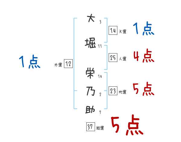 天運![]() | 大堀栄乃助さんの天運は14画の1つ星!人に対して優しいがストレスを溜め込みがち。人間関係のトラブルを避けるよう気をつけましょう。 家系が持つ宿命的な運勢を表します。祖先から受け継いだ苗字ですので自分の力が及びません。家柄を象徴します。 |