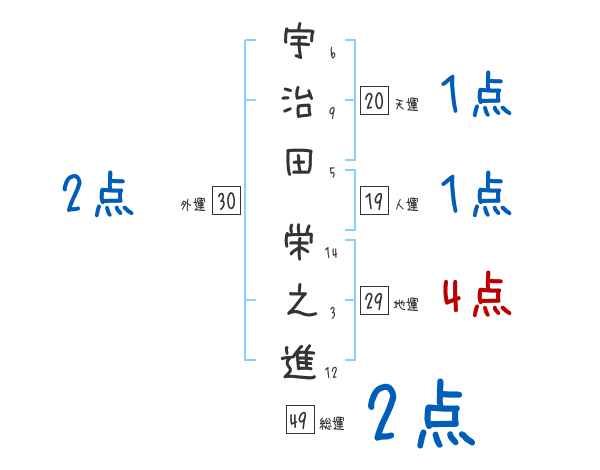 宇治田栄之進さんの画数の鑑定結果