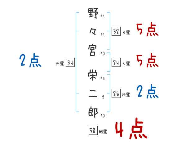 天運![]() | 野々宮栄二郎さんの天運は32画の5つ星!柔軟性があり成功する。チャンスが多く金運が良い。 家系が持つ宿命的な運勢を表します。祖先から受け継いだ苗字ですので自分の力が及びません。家柄を象徴します。 |