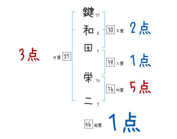 鍵和田栄二さんの画数の鑑定結果