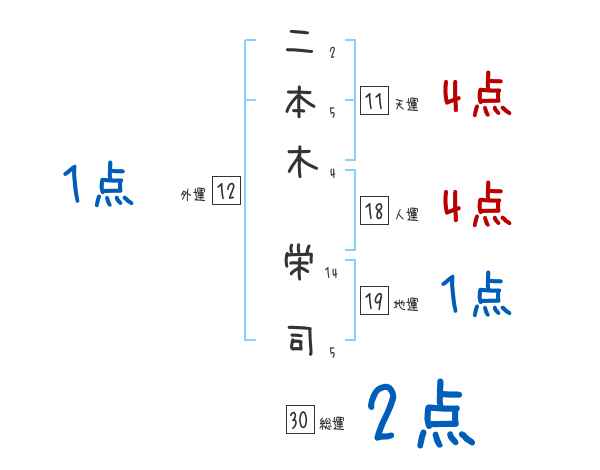 二本木栄司さんの画数の鑑定結果