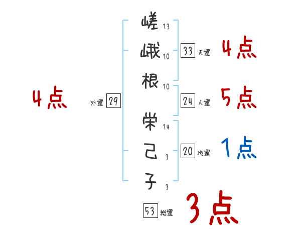 嵯峨根栄己子さんの画数の鑑定結果