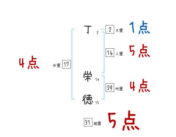 丁栄徳さんの画数の鑑定結果
