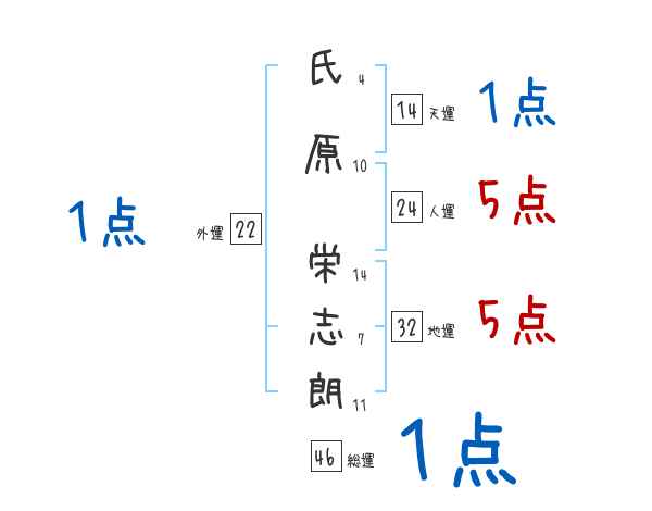 氏原栄志朗さんの画数の鑑定結果