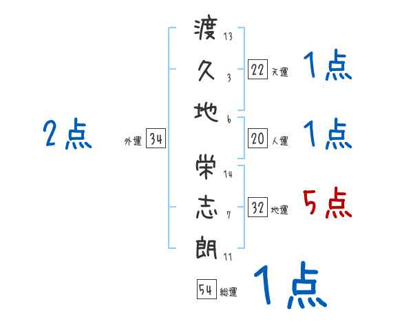 地運![]() | 渡久地栄志朗さんの地運は32画の5つ星!柔軟性があり成功する。チャンスが多く金運が良い。 個性を表す基礎的な運勢です。性格形成や対人関係、行動力など家庭環境に影響されます。主に誕生してから20歳くらいまでの若年期の運勢を表します。 |