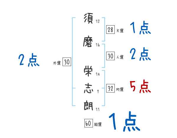 須磨栄志朗さんの画数の鑑定結果