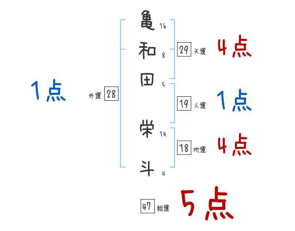 亀和田栄斗さんの画数の鑑定結果