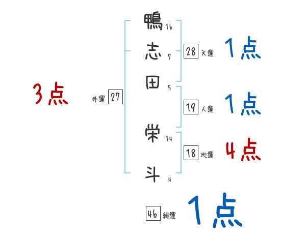 鴨志田栄斗さんの画数の鑑定結果